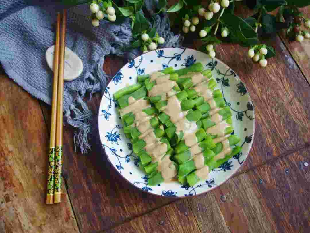 豆角一把、芝麻酱30克左右、盐、水适量、香油半小勺